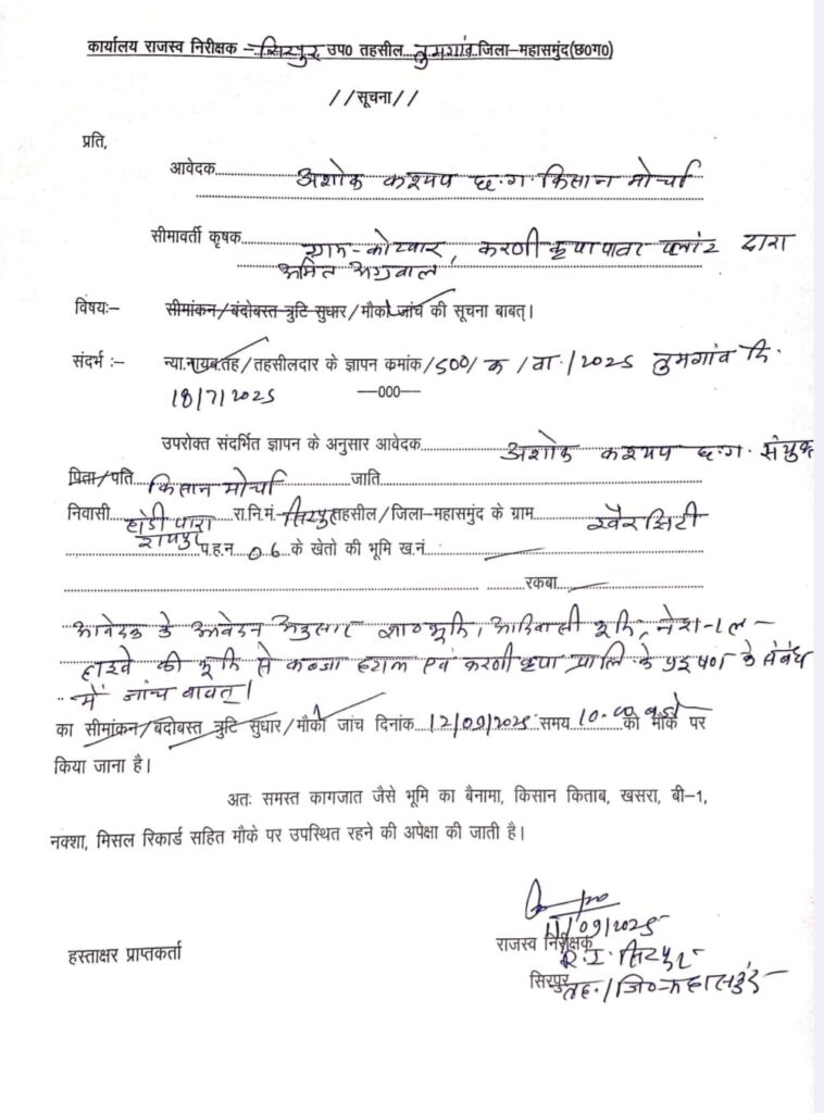 महासमुंद, 11 सितम्बर। करणी कृपा स्टील एवं पावर प्लांट पर शासकीय, आदिवासी, सिंचाई विभाग, राष्ट्रीय राजमार्ग तथा वन विभाग की भूमि सहित किसानों की काबिल कास्त भूमि पर जबरन कब्ज़े का गंभीर आरोप लगाते हुए किसान मोर्चा अब खुलकर मैदान में उतर आया है।
