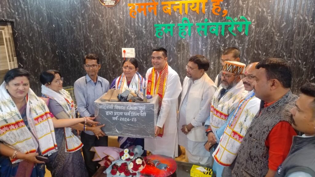 छत्तीसगढ़ शासन के आदिवासी विकास विभाग, दुर्ग द्वारा संचालित रविदास चर्म शिल्प योजना के तहत केंद्रीय महिला एवं बाल विकास राज्य मंत्री श्रीमती सावित्री ठाकुर जी ने स्वयं हितग्राहियों को पेटी प्रदान की। इस अवसर पर विभागीय अधिकारी, कर्मचारी एवं छत्तीसगढ़ सर्व रविदास समाज के पदाधिकारी विशेष रूप से उपस्थित रहे।