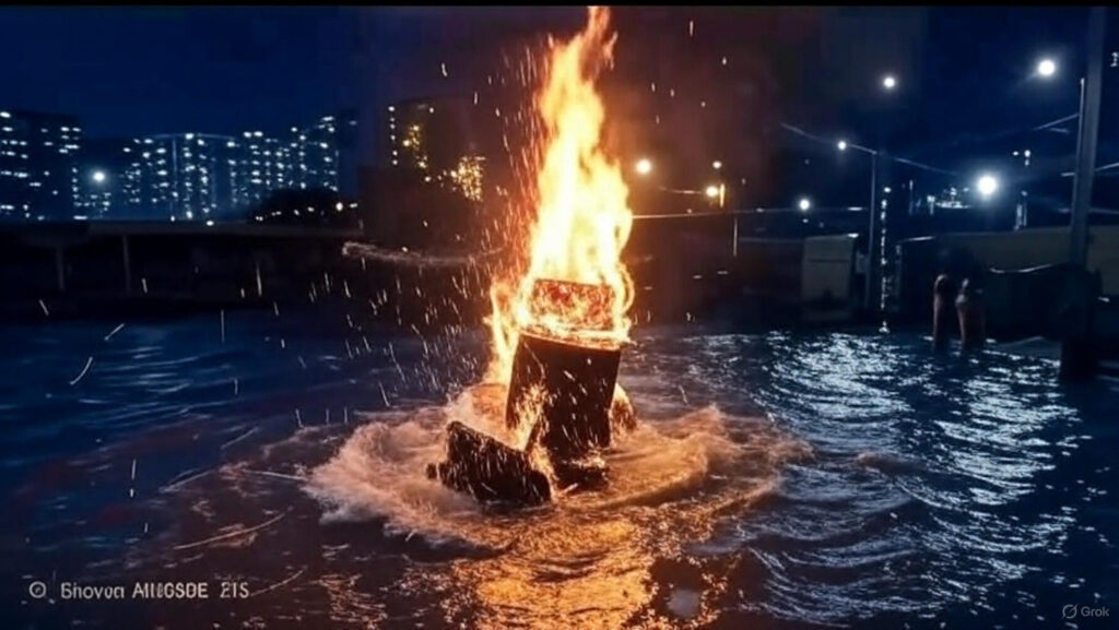 महासमुंद। आज विजयादशमी के दिन शाम ढलते ही झमाझम बरसात ने पूरे उत्सव का हाल बदल दिया। मैदान सज-धज कर तैयार थे, रामलीला का मंच सजा था, पुतलों में पटाखे भर दिए गए थे, पर पानी ने सारी तैयारियों को यूँ धो दिया जैसे वर्षों से जमा उम्मीदों पर कोई अचानक बौछार पड़ गई हो। नतीजा यह हुआ कि कहीं रावण आधा जला, कहीं उसका धुआँ ही फैल पाया और कहीं तो दर्शक केवल गीली लकड़ियों की दुर्गंध के साथ घर लौट गए।
