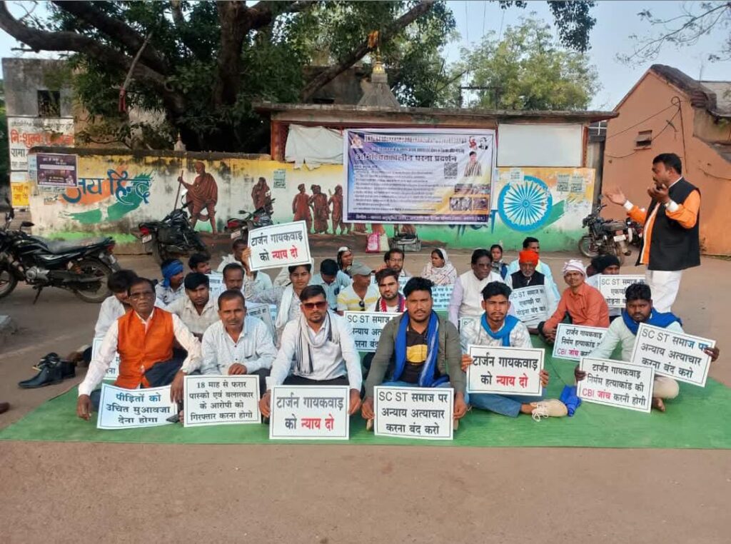 अनुसूचित जाति-जनजाति समाज का अनिश्चितकालीन धरना जारी, न्याय एवं अधिकारों की मांग को लेकर सैकड़ों लोग जुटे